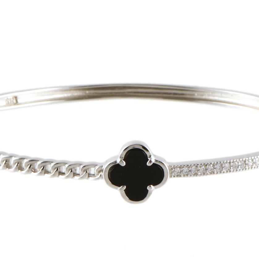134. Pulsera de media caña con detalle en forma de trébol en ónix.