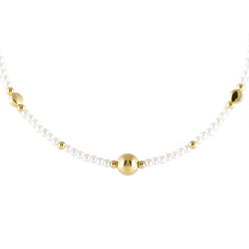En plata sobredorada 925. Cuentas de símil perla de 2,7 mm.