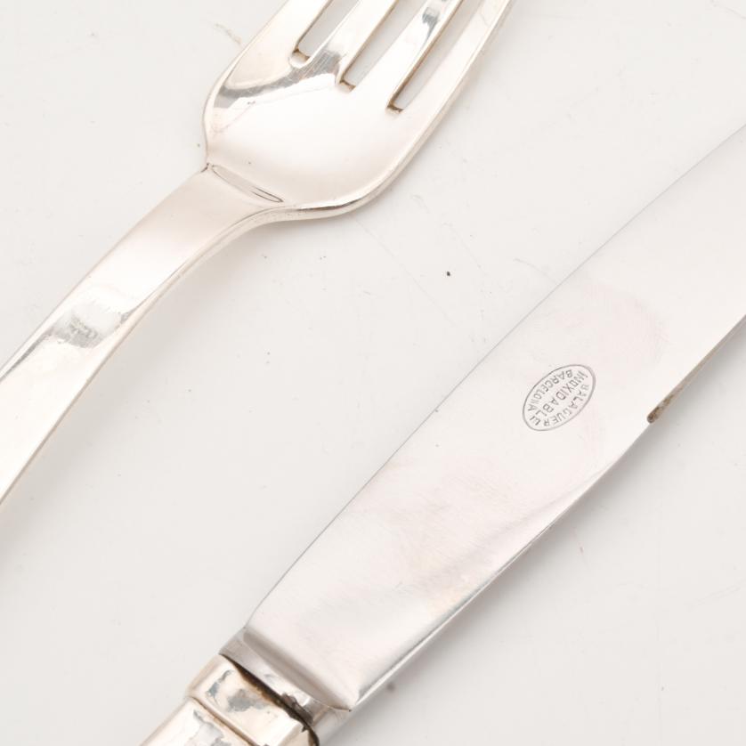 Compuesto por veintidós cucharas soperas, veinte tenedores de postre, veintiséis palas pescado, veintidós tenedores, veintitrés tenedores de pescado, veintitrés cucharas de postre, doce tenedores de ostras, veintitrés cucharas de café, trece cucharas de helado, veintidós cuchillos grandes, doce cuchillos lunch, diez cuchillos de postre y varias piezas de servir.