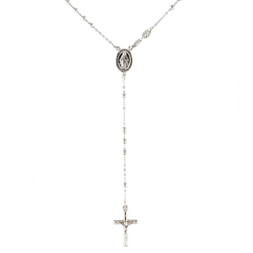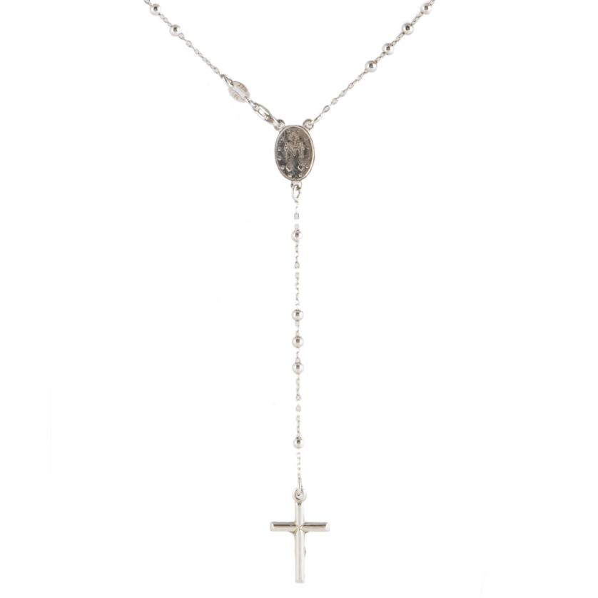 188. Rosario en plata, con cruz colgante e imágen de la virgen.