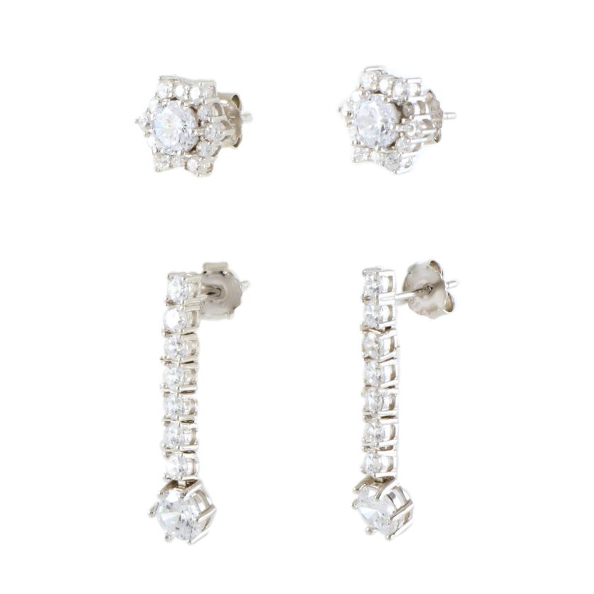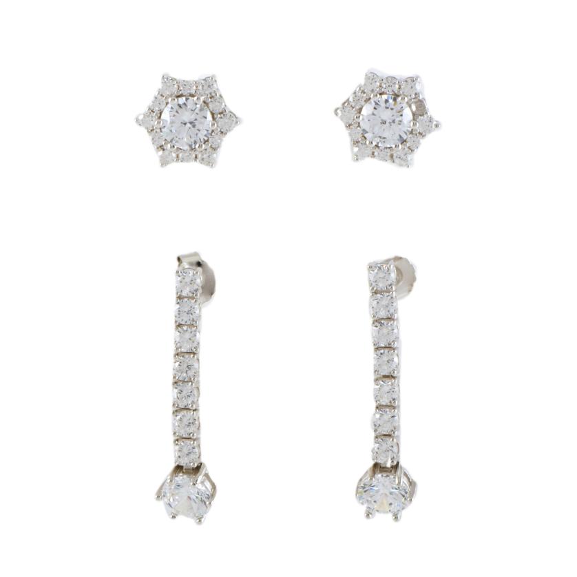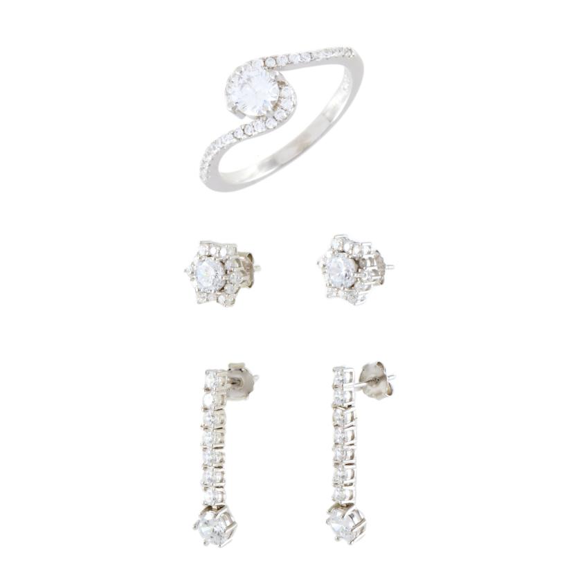 203. Juego de dos pares de pendientes y anillo con circonitas.