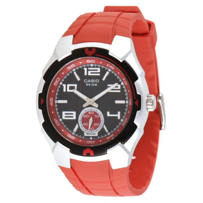 Con caja en aluminio de 41 mm, correa en caucho roja.