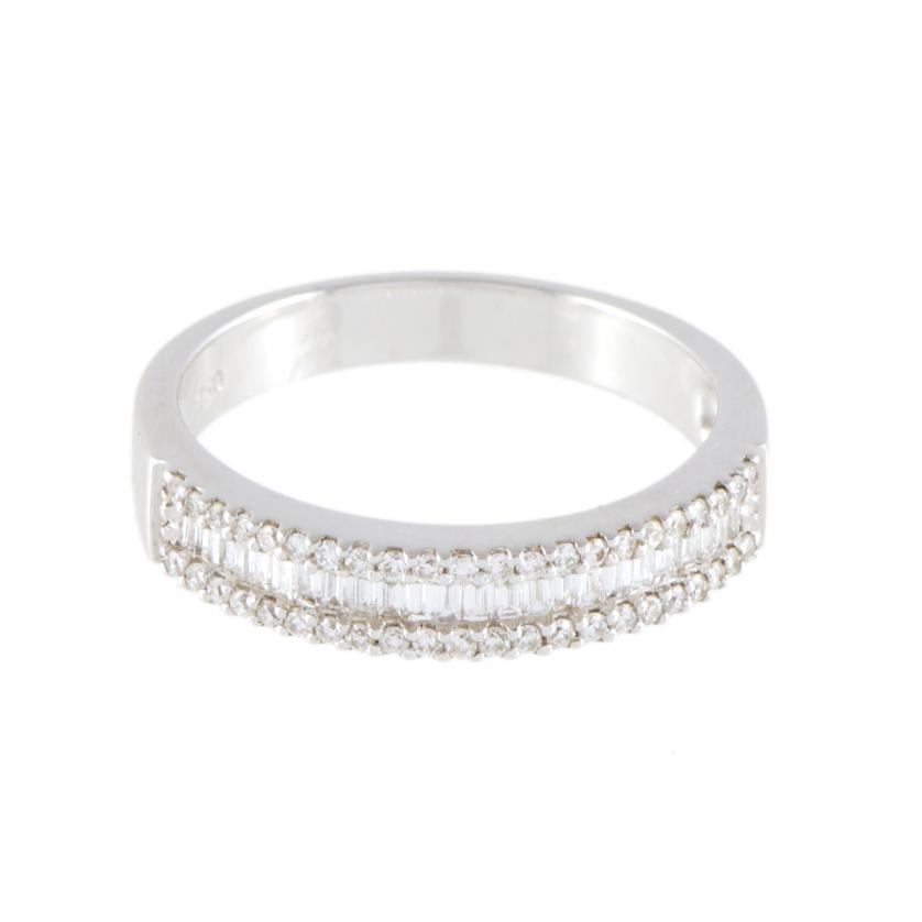 En oro blanco de 18 kt. Diamantes en carril talla baguette y brillante.