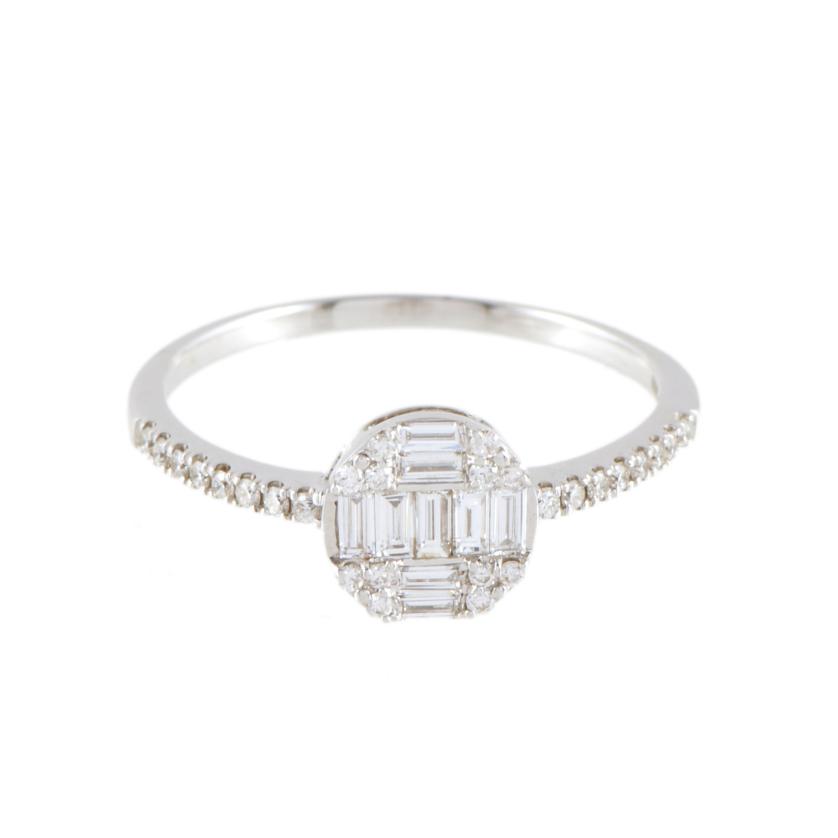 En oro blanco de 18 kt. Diamantes talla brillante y talla baguette.