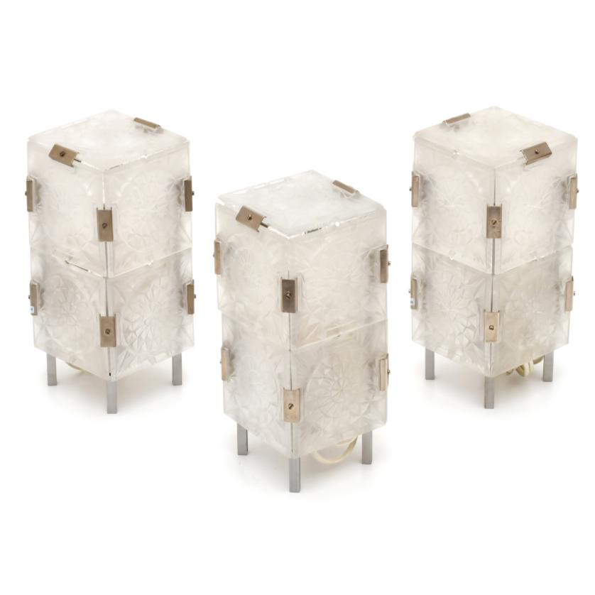 373. SIGUIENDO MODELOS DE JOSEF HEJTMAN, tres lámparas de sobremesa.
