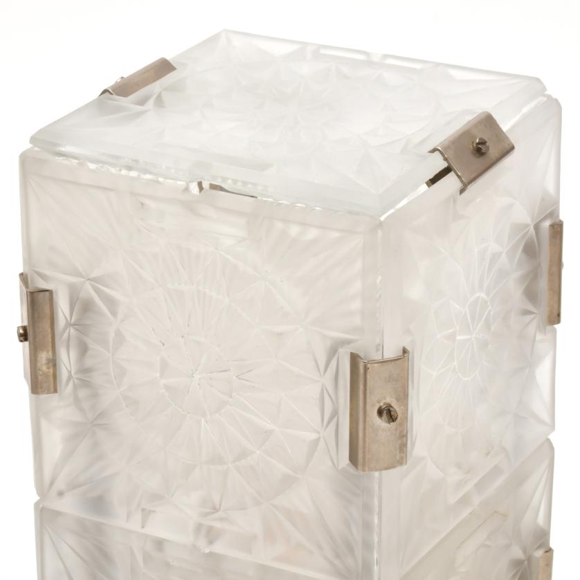 En cristal y metal plateado.