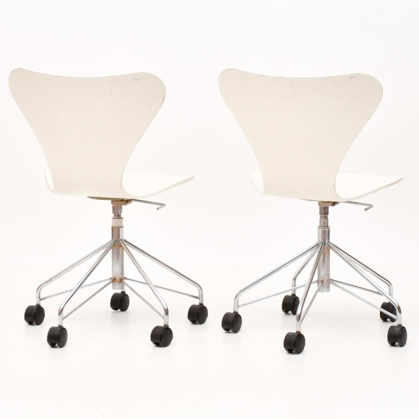 391. ARNE JACOBSEN (1902-1971) Pareja de sillas con ruedas modelo 3117.