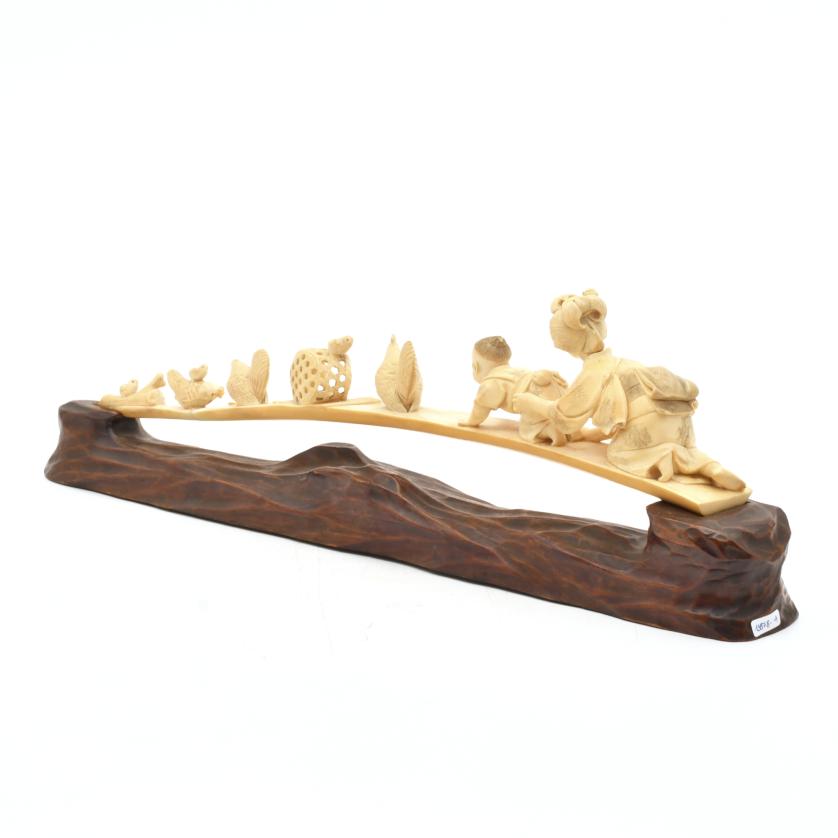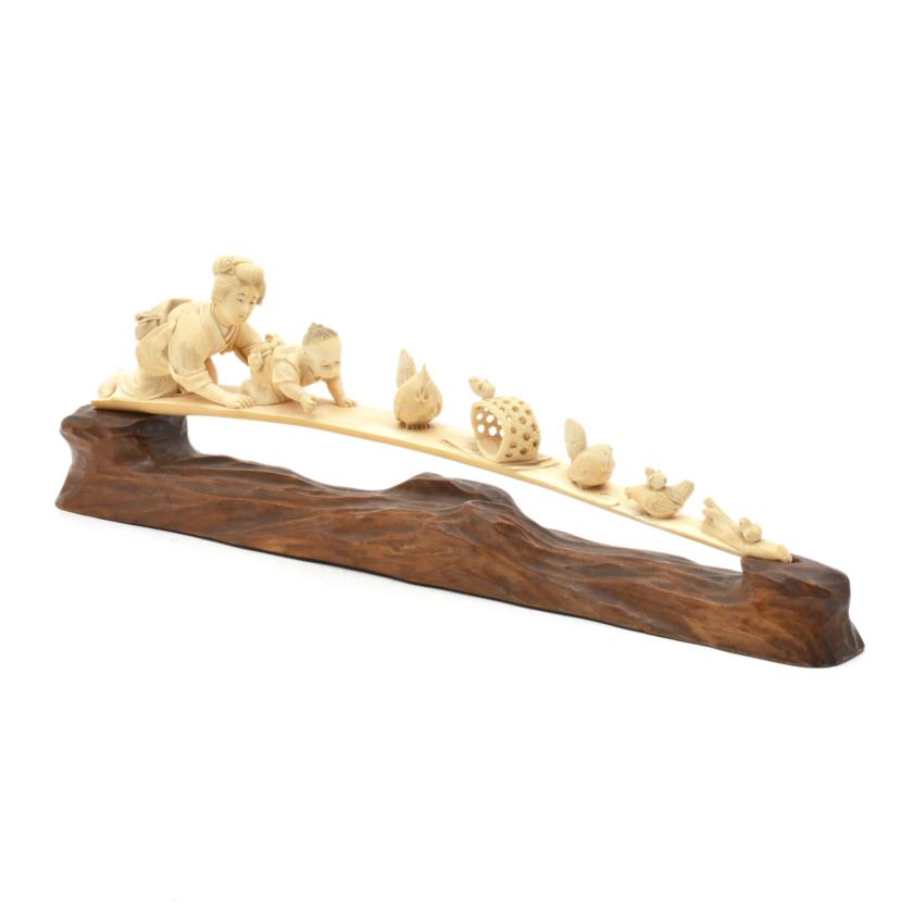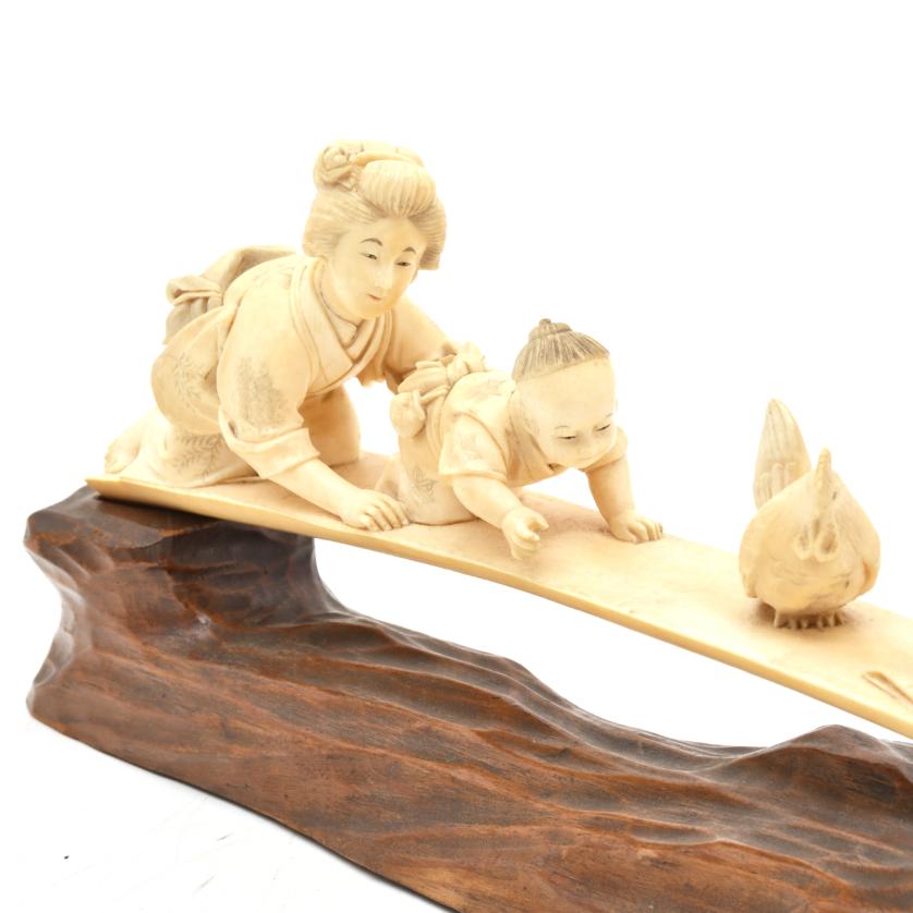 450. ESCUELA JAPONESA. PERÍODO MEIJI, FIN. SIGLO XIX. Mujer y niño con gallinas.