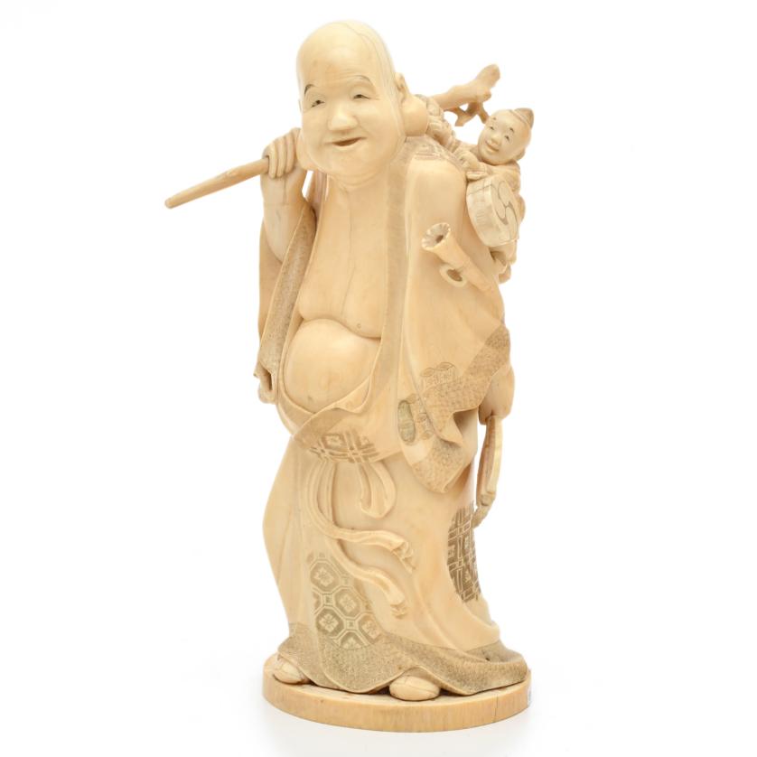 457. ESCUELA JAPONESA. PERÍODO MEIJI, SIGLO XIX. Hotei con niño.