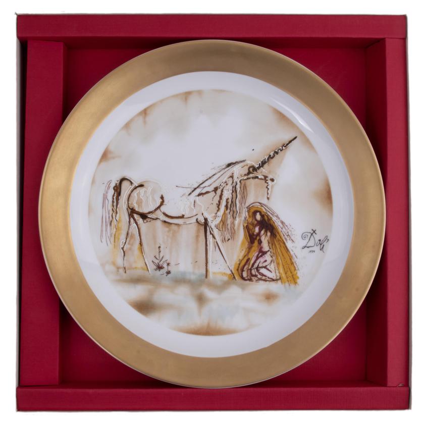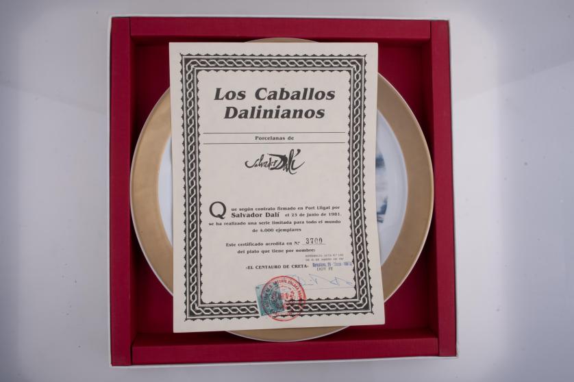 En porcelana con la representación de los cuatro modelos de la serie "Los Caballos Dalinianos": "El Centauro", "Calígula", "Don Quijote" y "El Unicornio".