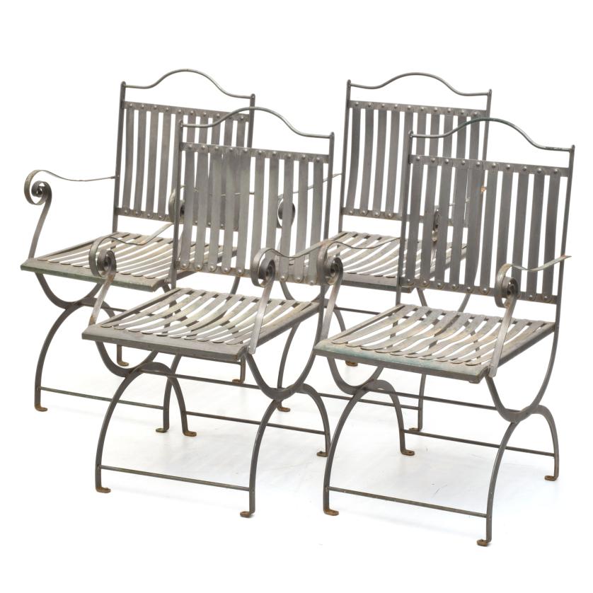 464. ESCUELA FRANCESA, SIGLO XX. Lote de 4 sillas de jardin.
