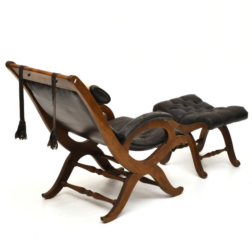 465. VALENTÍ. Sillón en piel con otomana, med. siglo XX.
