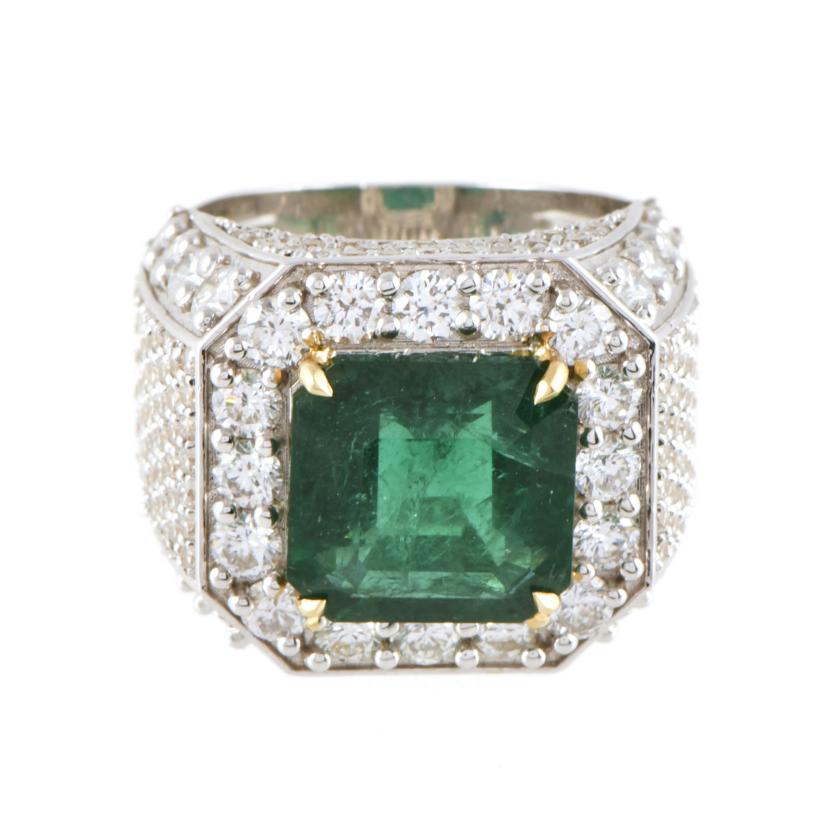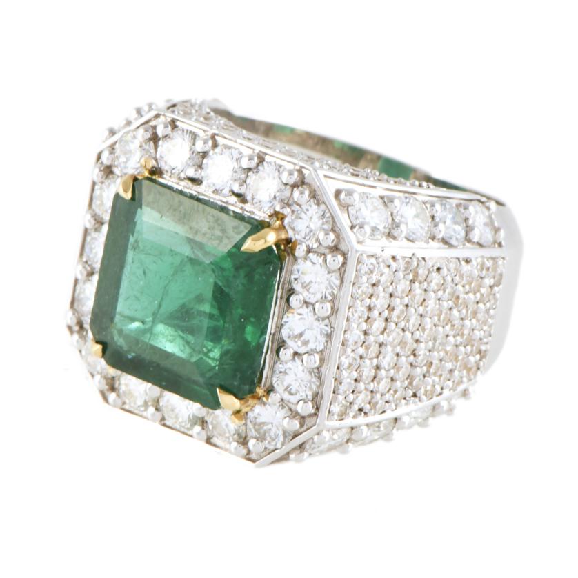 52. Anillo tipo sello con esmeralda y pavé de diamantes.