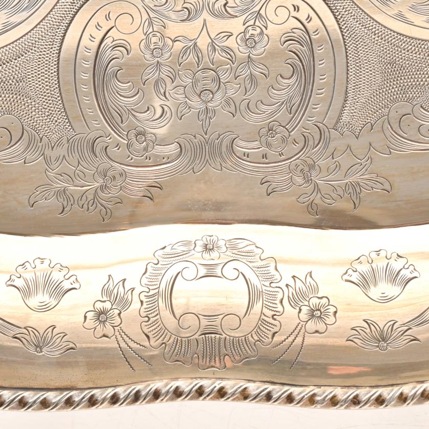 En plata. Decorada con motivos vegetales.