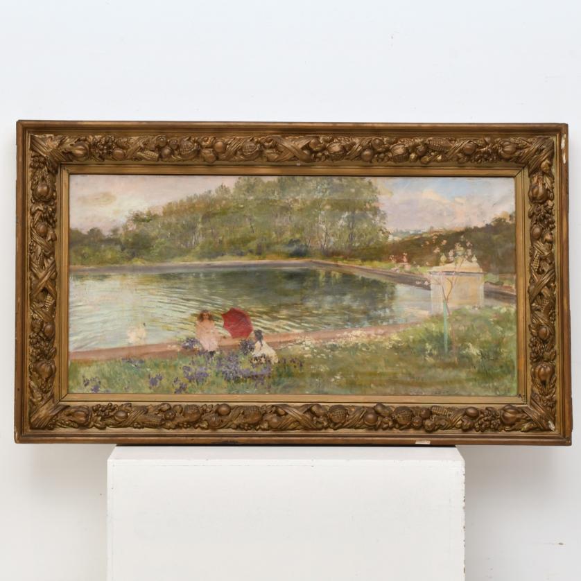619. CARLOS VÁZQUEZ (1869-1944) "Estanque con niñas".