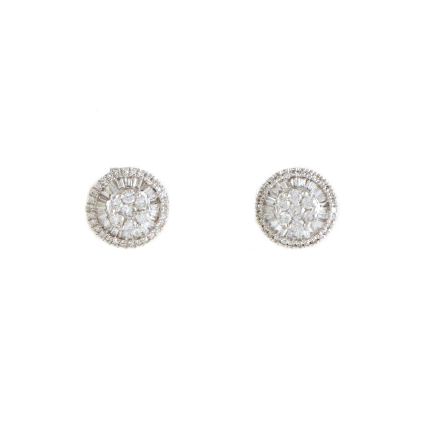 En oro blanco de 18 kt. Diamantes talla brillante y baguette, con un peso total aprox. de 0,44 ct.