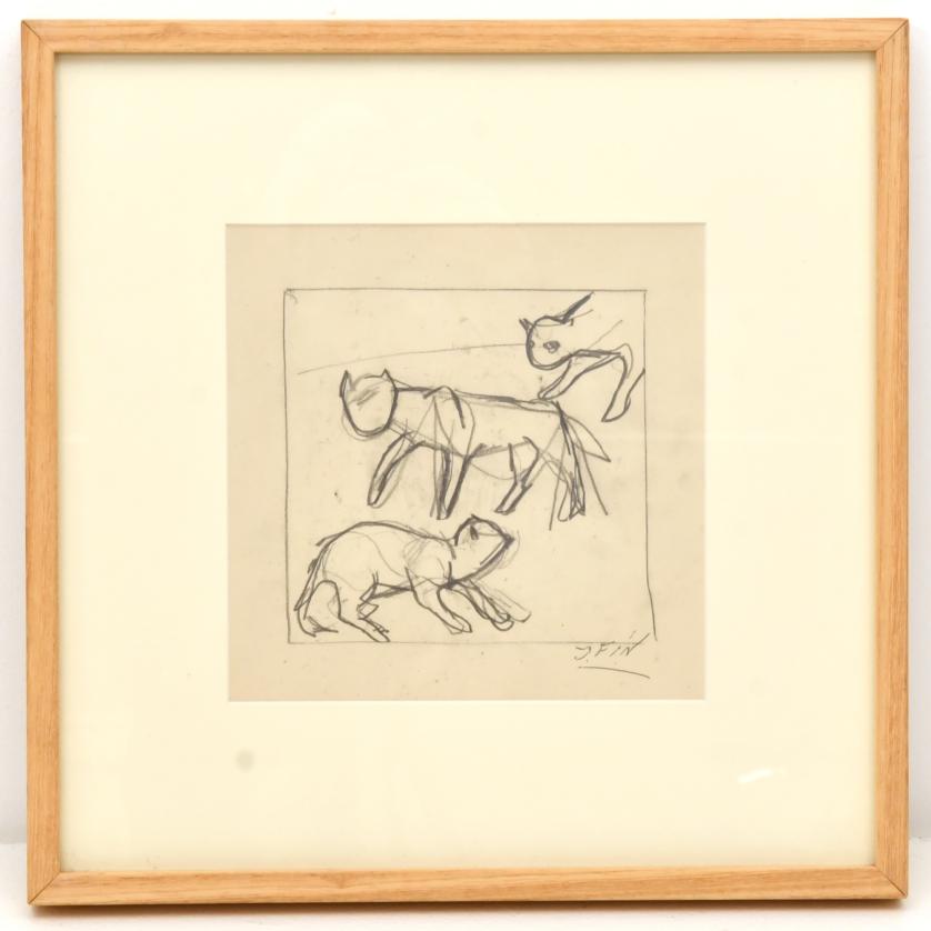 703. JOSE VILATO RUIZ, "FIN" (1916-1969). "Cabra" y "Gatos", dibujados por ambas caras del papel.