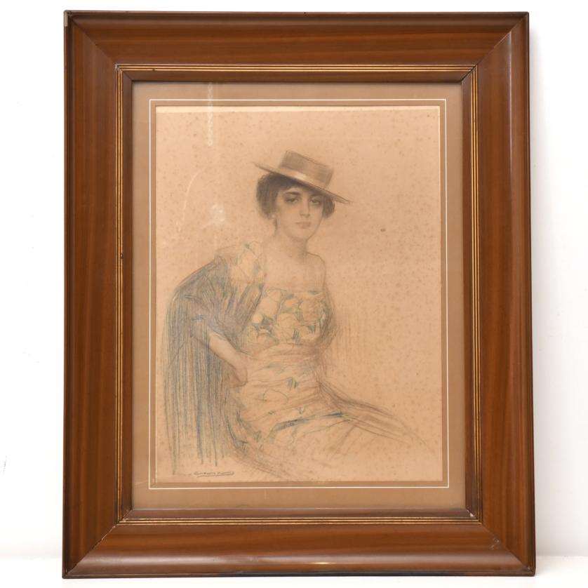 715. RAMÓN CASAS Y CARBO (1866-1932). "Mujer con mantón y sombrero".