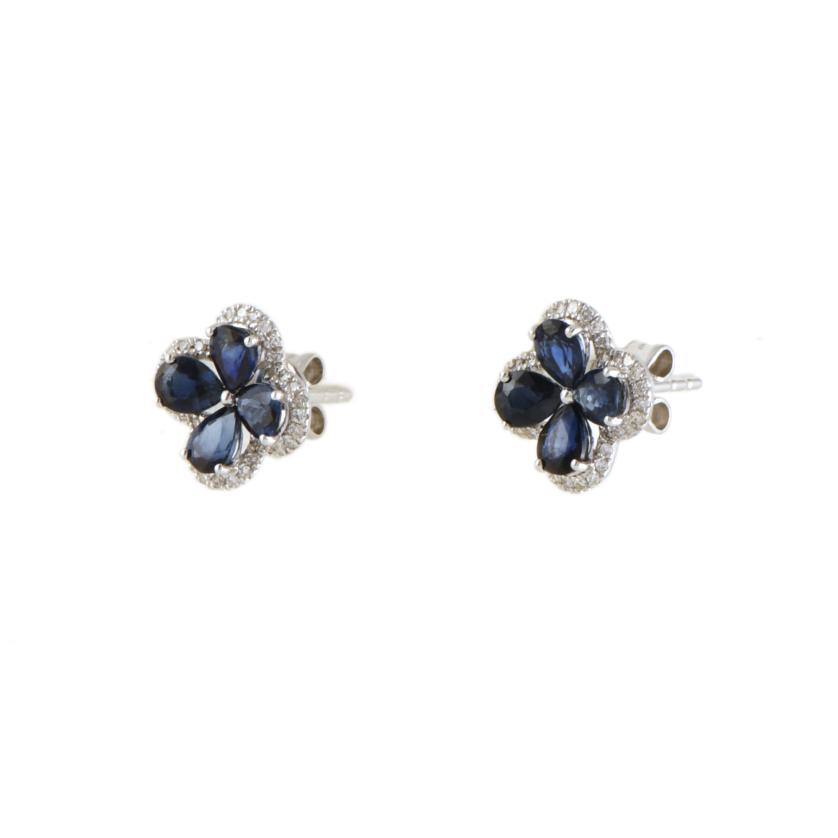 72. Pendientes en forma de flor con zafiros y diamantes.