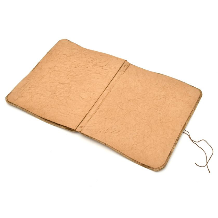 Cuero, hierro, arpillera y ensamblaje de cartón con marcas de hierro a fuego.