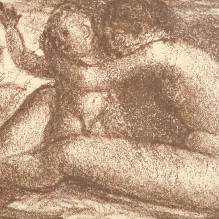 "Maternidad". 36/50, Pruna, 1929, 9,5 x 10,5 cm; 24 x 27 cm (marco).