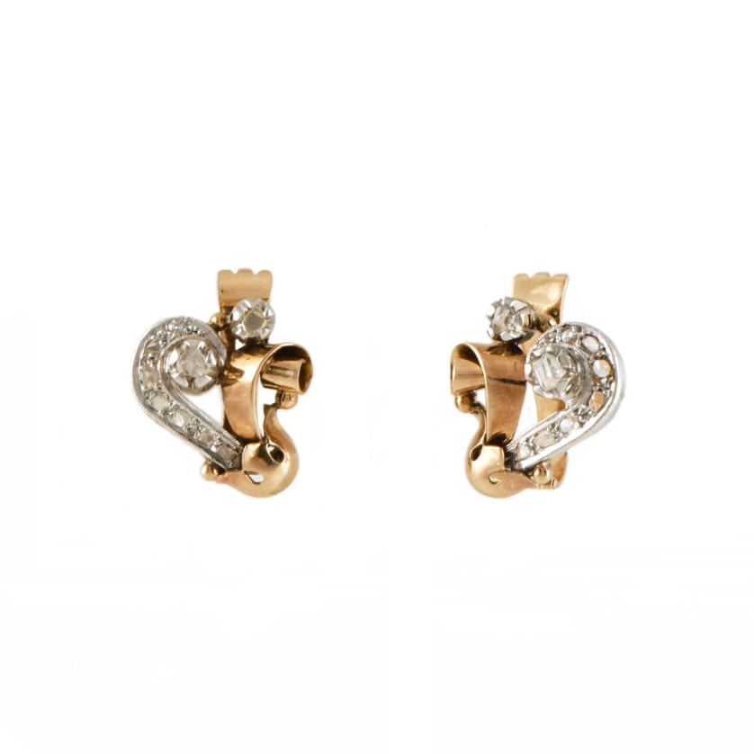En oro amarillo de 18 kt. Con vistas en oro blanco. Diamantes talla antigua.