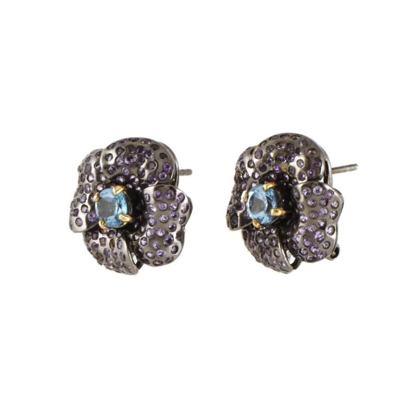 83. Pendientes en forma de flor con amatistas y topacio azul.