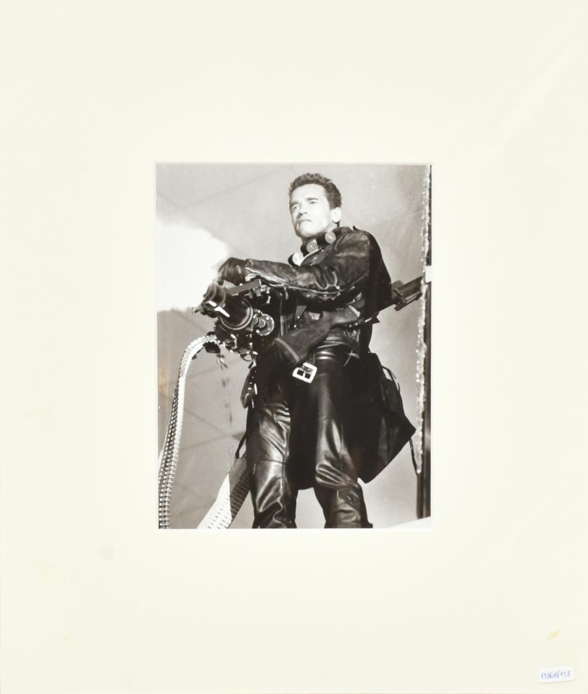 Fotografia promocional de Arnold Schwarzenegger para la película Terminator 2: Judgement Day, dirigida por James Cameron.