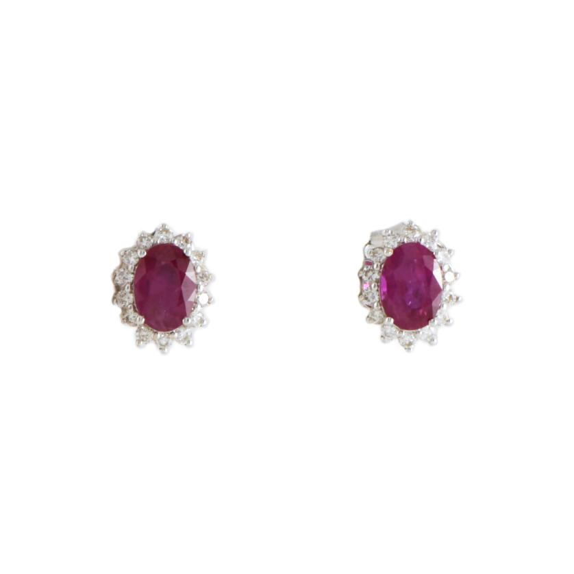 En oro blanco de 18 kt. Rubíes Burma talla oval. Diamantes talla brillante.