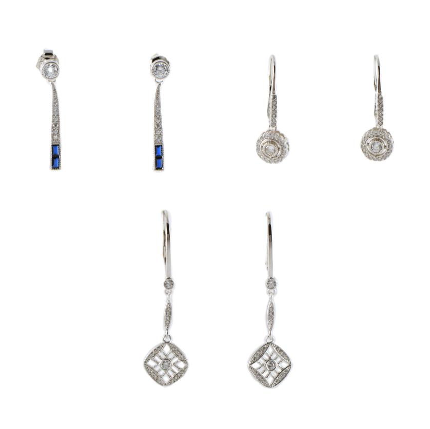 95. Lote de tres pares de pendientes con circonitas.