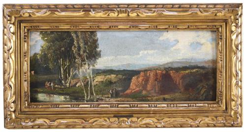 16608. ATRIBUIDO A FRANCESC TORRESCASSANA (1845-1918). "PAISAJE CON FIGURAS".