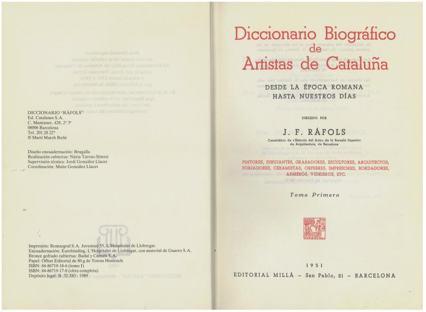 9354. JOSEP-FRANCESC RÀFOLS. "DICCIONARIO BIOGRÁFICO DE ARTISTAS DE CATALUÑA" (3 vols.).