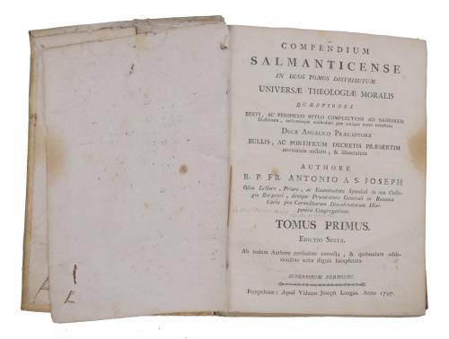 33551. ANTONIO DE SAN JOSÉ (1716 - 1794). Compendium salmanticense, in duos tomos distributum. universae theologiae moralis quaestiones...